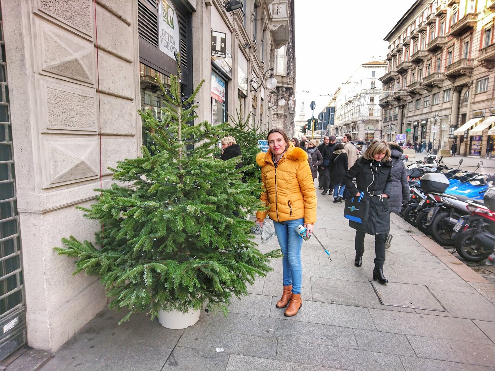 Galeria Vittorio Emanuele este superbă , bradul împodobit cu cristale swarowski era obiectul principal de atracție în jurul căruia roiau turiștii pentru a face poze. Ne-am plimbat prin mallul plin de magazine, cele mai renumite firme italienești își prezentau produsele calitative. Preturile erau pe măsură o geacă (nu geantă 😀)Louis Vuiton costa 2300 euro, o eșarfă burrbery 350 euro etc, sume astronomice.