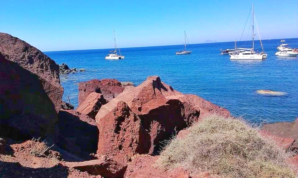 RED BEACH se află aproape de satul Akrotiri este o plajă pitorească renumită datorită nisipului cărămizu și a stâncilor vulcanice care o înconjoară. Apa este foarte caldă și limpede. Pentru a ajunge la plajă trebuie sa parcurgeți o potecă anevoioasă.