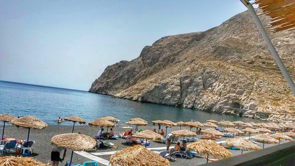 PERISSA este un oraș de coastă situat la 13 km de Fira caitala insulei. Plaja Kamari are caracteristici unice; plaja cu nisip vulcanic negru, apă cristalină și multe alte facilități și este una dintre cele mai populare plaje . Nisipul negru și apa cristalină a mării alcătuiesc o imagine unică . Sunt sezlonguri de închiriat cu umbrele 7 euro toată ziua, oferă o băutură rece . Perissa este populată doar în sezonul estival , zona stațiunii este nou construită , creată special pentru turism de aceea contrastează puțin cu celelalte sate care sunt tradiționale . Stațiunea are câte ceva pentru toată lumea ; o seară liniștită la un restaurant cu vedere la mare , baruri cu muzică și dicoteci în aer liber. Avioanele zburau deasupra capului pregătindu-se să aterizeze pe pista din apropiere.