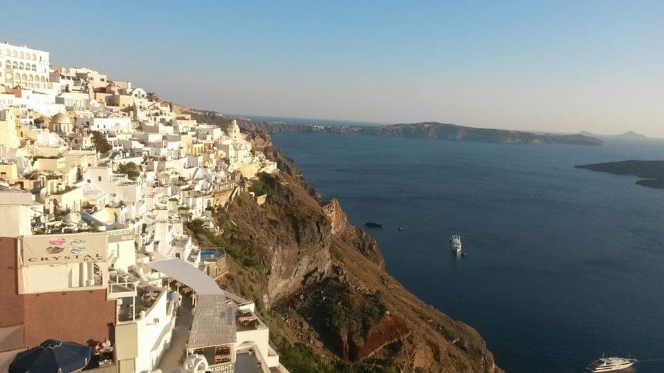 Odată ajunși în Santorini celebra insuă vulcanică, nu trebuie să ratați două lucruri : priveliștea de pe Oia și apusul la un restaurant pe calderă în Fira. În Fira am mers într-un punct de panoramă pentru a vedea craterul vulcanului .